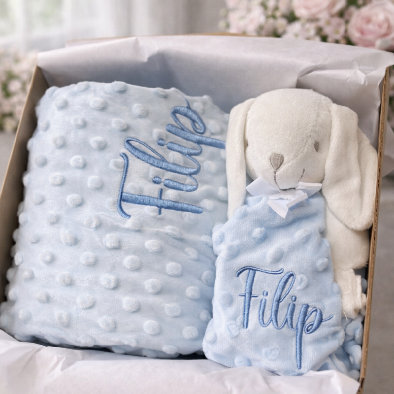 Minky odejico z izvezenim imenom, velikost 90x100 cm