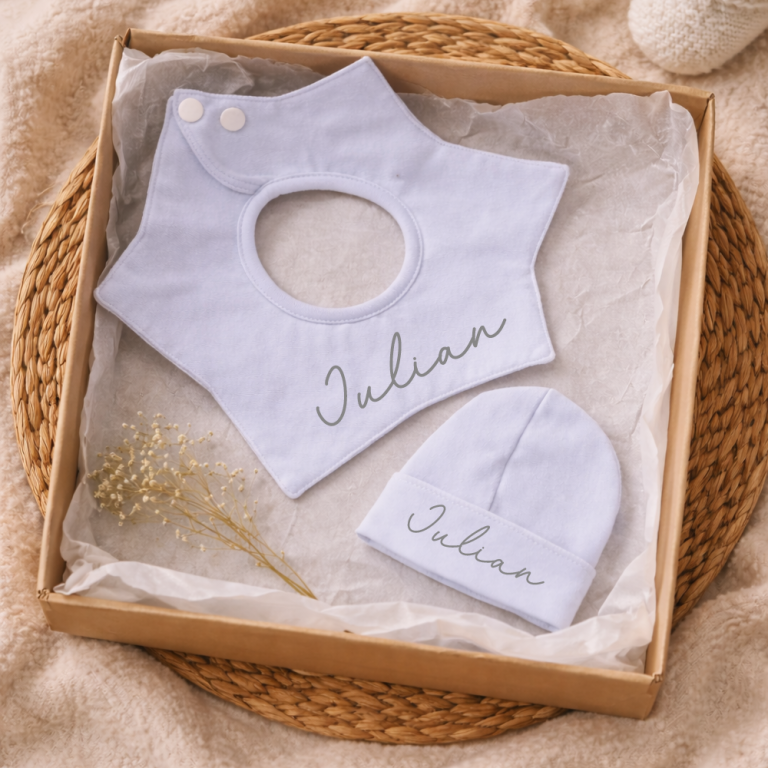 Darilna škatla z imenom dojenčka.