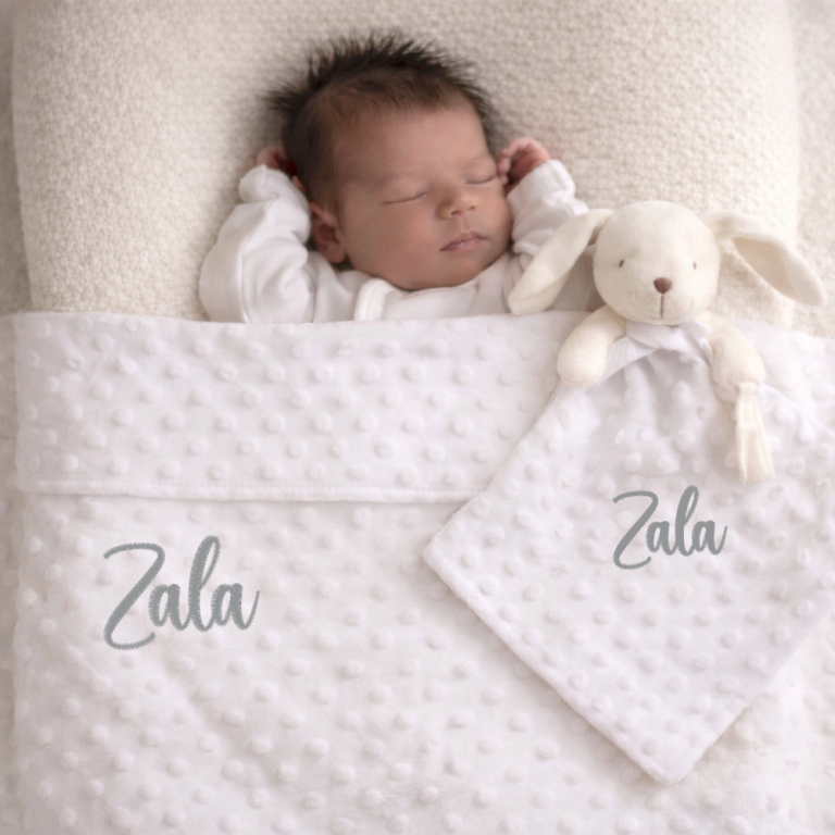 Minky odejico z izvezenim imenom, velikost 75x100 cm (vezenina je na enobarvni strani)
