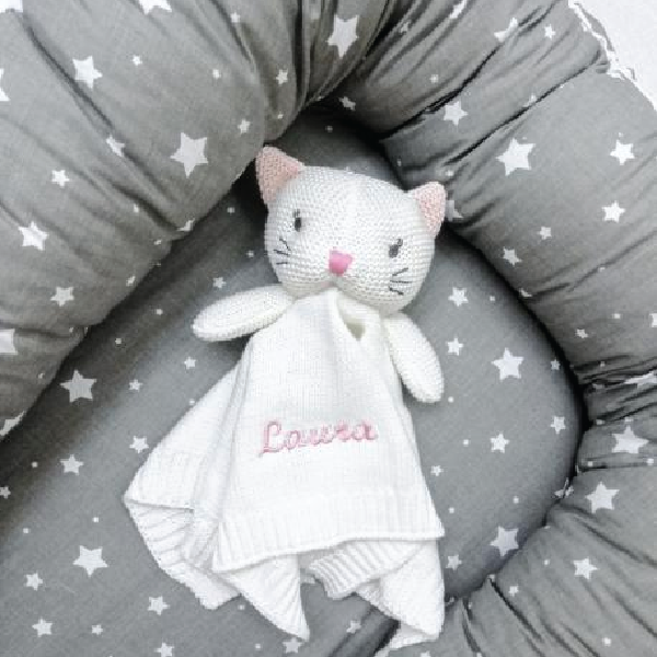 Personaliziran dotik: na njegovem ušesu je izvezeno ime dojenčka, kar naredi zajčka resnično edinstvenega in pusti nepozaben spomin na otroštvo.