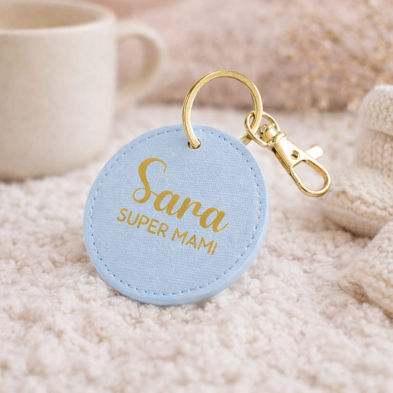 Ljubka pozornost za mamico ob rojstvu otroka. Obesek za ključe ali torbico, s potiskom njenega imena.