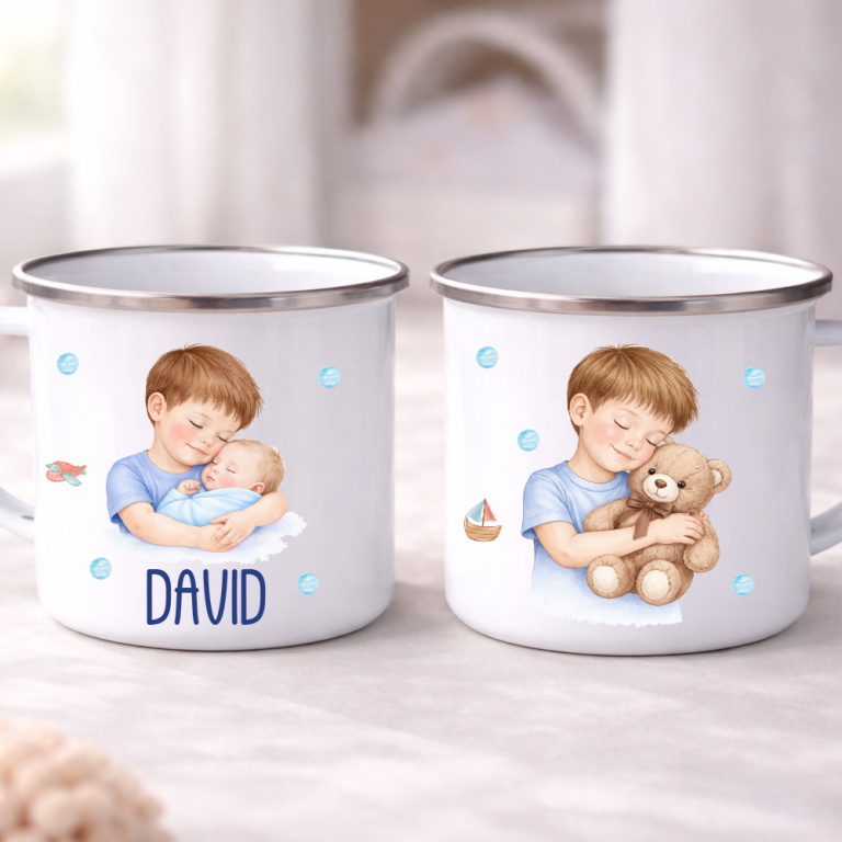 Super darilo za vse velike ponosne bratce in sestrice. Emajlirana skodelica z napisom imena po želji in grafiko pikapolonic in čebelic.