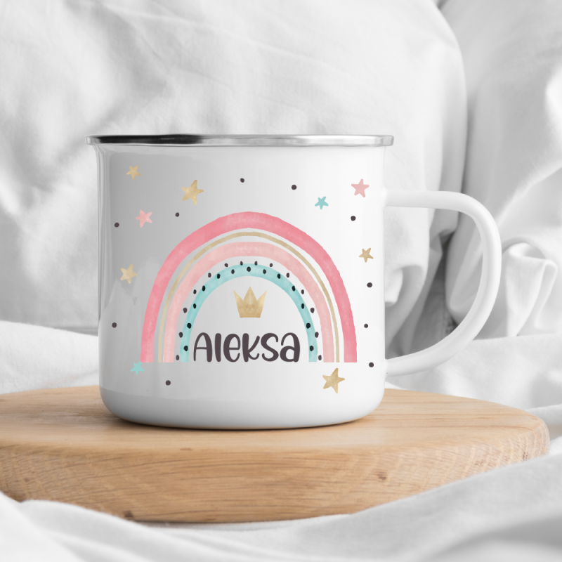 Emajlirana skodelica z imenom po izbiri - Mavrica